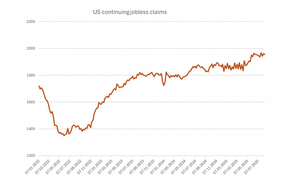 Mēneša grafiks: ASV ilgstošo bezdarbnieku pabalstu pieprasījumu skaits pieaug