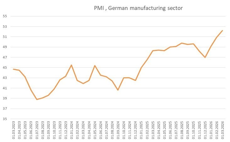Mēneša grafiks: Neraugoties uz ģeopolitiskajām norisēm, noskaņojums par Vācijas ražošanas nozari ir uzlabojies.