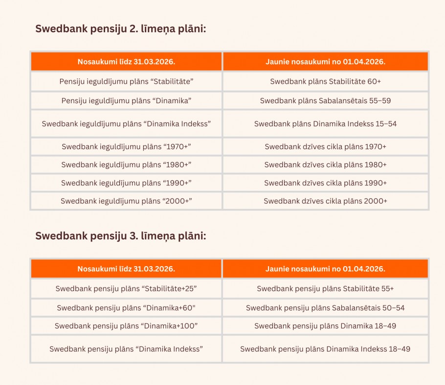 Swedbank pensiju plānu jaunie nosaukumi: